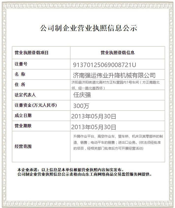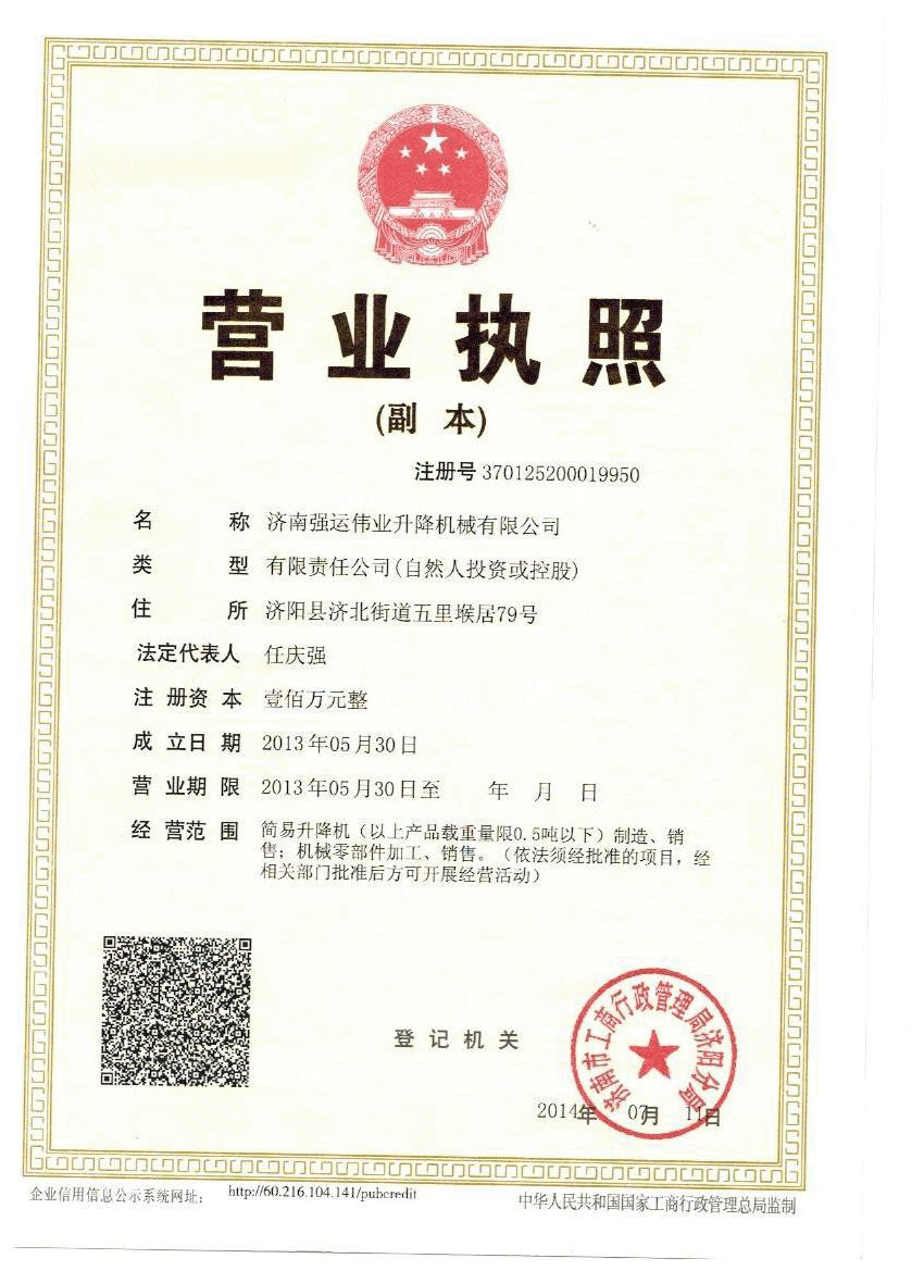 濟南強運偉業升降機械有限公司位于液壓設備制造之鄉——濟南,是全國生產、制造液壓升降平臺和物流搬運的專業生產廠家之一。本公司宗旨是“誠信為本、科技創新、質量第一、用戶至上”的經營理念,生產出優質產品,服務社會。 公司現生產升降機,升降平臺,殘疾人升降機,殘疾人升降平臺,無障礙升降機,無障礙升降平臺液壓升降機、液壓升降平臺、固定式升降機,固定式升降平臺,鋁合金升降機,鋁合金升降平臺,導軌式升降機,導軌式升降平臺,自行式升降機,自行式升降平臺,車載式升降機,車載式升降平臺,登車橋,移動式登車橋,固定式登車橋,高空作業平臺等多種系列的高空作業平臺,液壓升降平臺主要有五大系列六十多個品種,產品遍布全國各地,在同行業中名列前茅。其中剪叉式、套缸式、屈臂式、牽引式、鋁合金式、導軌式升降機......