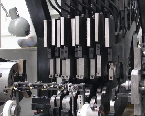 機床一次裝夾可實現(xiàn)曲軸所有主軸頸、連桿頸上的沉割槽圓角滾壓、在線測量、滾壓校直的自動加工全過程,工作效率高,勞動強度低,調(diào)整方便,機床采用懸掛式九鉗結(jié)構(gòu)系國內(nèi)外首創(chuàng),突破了導(dǎo)軌式曲軸圓角滾壓機床目前只設(shè)置5個滾壓鉗的局限。